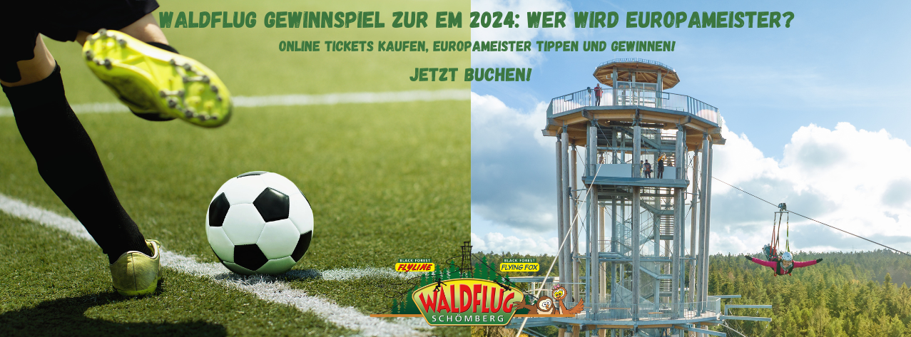 - Ticket kaufen: Kaufe in unserem Onlineshop ein Ticket für eine unserer spannenden Waldflug-Aktivitäten (Flyline oder Flying Fox oder Kombiticket) im Aktionszeitraum vom 14. Juni bis 4. Juli 2024.